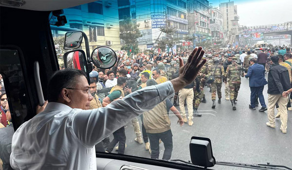আজ বৃহস্পতিবার (২৫ ডিসেম্বর) হযরত শাহজালাল আন্তর্জাতিক বিমানবন্দরে অবতরণের মাধ্যমে দীর্ঘ ১৭ বছর পর ফিরে আসলেন বিএনপির ভারপ্রাপ্ত চেয়ারম্যান তারেক রহমান। বিমানবন্দর থেকে আনুষ্ঠানিকতার শেষ করে তিনি একটি গাড়ি বহরের সঙ্গে কাওলা বাস স্ট্যান্ড এলাকায় পৌঁছান। এরপর তার গাড়ি বহর পশ্চিম দিকে এগিয়ে যায়, রওনা নিয়ে যেতে সেখানে তৈরি বিশাল এক সংবর্ধনা মঞ্চের দিকে।