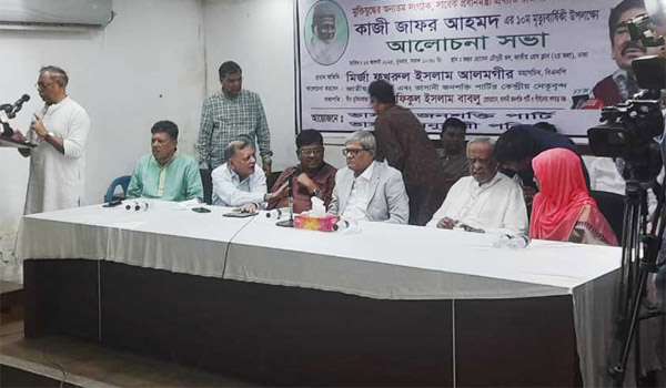 আজ বুধবার (২৭ আগস্ট) জাতীয় প্রেস ক্লাবে বীর মুক্তিযোদ্ধা, সাবেক প্রধানমন্ত্রী ও জাতীয় পার্টির চেয়ারম্যান প্রয়াত কাজী জাফর আহমেদের দশম মৃত্যুবার্ষিকী উপলক্ষে ভাসানী জনশক্তি পার্টি ও ভাসানী অনুসারী পরিষদ আয়োজিত এক আলোচনা সভায় তিনি এসব কথা বলেন।