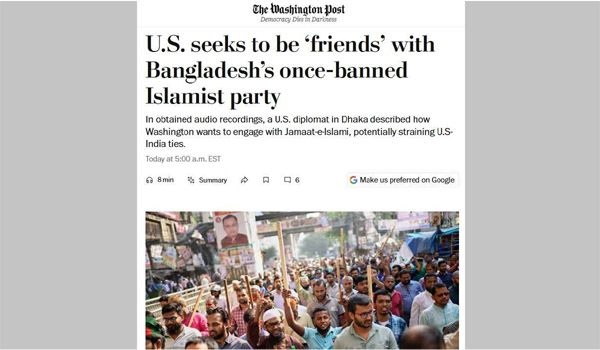 বাংলাদেশে ত্রয়োদশ জাতীয় সংসদ নির্বাচনের পথে রয়েছে জামায়াতে ইসলামী, যে কোনো সময় তাদের ইতিহাসের সবচেয়ে সফল নির্বাচনী ফলাফল লাভের সম্ভাবনা রয়েছে। এমন ঘটনাকে কেন্দ্র করে দেশের রাজনৈতিক পরিবেশে নতুন সংকেত দিচ্ছে যুক্তরাষ্ট্রের কূটনীতিকরা, যারা জামায়াতের সঙ্গে যোগাযোগ ও সম্পর্ক জোরদার করতে আগ্রহ প্রকাশ করেছেন। এই বিষয়টি নিয়ে প্রকাশিত হয়েছে ওয়াশিংটন পোস্টের একটি বিশ্লেষণমূলক প্রতিবেদন।
