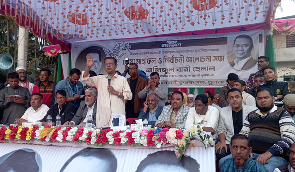 খুলনা-৪ আসনের বিএনপি প্রার্থী ও তথ্য বিষয়ক সম্পাদক আজিজুল বারী হেলাল বলেন, রূপসা, তেরখাদা ও দিঘলিয়া জেলা মৎস্য সম্পদে সমৃদ্ধ একটি কেন্দ্রীয় এলাকা। এই অঞ্চলের নদী, খাল ও জলাশয়কে সঠিকভাবে কাজে লাগানো গেলে খুলনা-৪ আসনকে দেশের অন্যতম প্রধান মৎস্য উৎপাদন কেন্দ্র হিসেবে গড়ে তোলা সম্ভব। তিনি উল্লেখ করেন, যদি আগামী জাতীয় সংসদ নির্বাচনে জনগণ ভোট দিয়ে বিএনপি সরকার গঠন করতে সক্ষম হন, তাহলে খুলনা-৪ এর মৎস্য খাতকে আধুনিক ও টেকসই শিল্পে রূপান্তর করা তার অন্যতম অগ্রাধিকার হয়ে উঠবে। মৎস্য শিল্প আমাদের অর্থনীতির একটি গুরুত্বপূর্ণ চালিকাশক্তি। এই শিল্পকে কোনোভাবেই অবহেলা বা ধ্বংস হতে দেওয়া যাবে না। অসাধু ব্যবসায়ীদের হাত থেকে মৎস্য শিল্পকে রক্ষা করে উৎপাদন বৃদ্ধির জন্য আধুনিক প্রযুক্তির ব্যবহার নিশ্চিত করতে হবে, যাতে মানসম্পন্ন মাছের উৎপাদন বাড়ানো যায়। মঙ্গলবার সকালে রূপসা উপজেলা চর রূপসায় বাংলাদেশ ফ্রোজেন ফুডস এক্সপোর্টস অ্যাসোসিয়েশনের খুলনা অঞ্চলের আয়োজনের দোয়া মাহফিলে প্রধান অতিথির বক্তব্যে তিনি এসব কথা বলেন। এ অনুষ্ঠানে বিশেষ অতিথি হিসেবে বক্তব্য রাখেন বিএফএফইএ সিনিয়র ভাইস প্রেসিডেন্ট মোঃ তরিকুল ইসলাম জহির। এরপর রহিমনগর ও জাবুসা এলাকায় নির্বাচনী আলোচনা সভায় আজিজুল বারী হেলাল বলেন, রূপসাকে শান্তির উপজেলা হিসেবে গড়ে তুলতে তিনি প্রতিশ্রুতিবদ্ধ। বিএনপি কখনো চাঁদাবাজ, সন্ত্রাসী বা মাদক কারবারিদের প্রশ্রয় দেয় না এবং প্রতিহিংসার রাজনীতি করে না। অতীতের ভুলের জন্য ক্ষমা চেয়ে তিনি বলেন, আপনারা ভালোবাসা ও সমর্থন দিয়ে আমাকে খুলনা-৪ কে একটি শান্তিপূর্ণ, সমৃদ্ধ ও উন্নত জনপদ হিসেবে গড়ে তুলতে চান। এলাকার উন্নয়ন ও মানুষের অধিকার প্রতিষ্ঠার জন্য তিনি কঠোর পরিশ্রম করে যাবেন। আলোচনা সভায় সভাপতিত্ব করেন খুলনা জেলা বিএনপির যুগ্ম-আহবায়ক মোল্লা খায়রুল ইসলাম, উপস্থিত ছিলেন জেলা বিএনপির নেতৃবৃন্দ, উপজেলা বিএনপি সদস্যরা, বিভিন্ন শ্রমিক, কৃষক ও স্বেচ্ছাসেবক সংগঠনের নেতারা। বিকেলে খুলনা জেলা কৃষকদলের আয়োজনে রহিমনগরে দোয়া মাহফিল ও সভায় প্রধান অতিথি হিসেবে বক্তব্য দেন আজিজুল বারী হেলাল। এতে সভাপতিত্ব করেন সাধারণ সম্পাদক শেখ মোঃ আবু সাঈদ। বিভিন্ন পর্যায়ের নেতৃবৃন্দের মধ্যে উপস্থিত ছিলেন দিঘলিয়া ও রূপসা উপজেলা বিএনপি নেতারা, শ্রমিক, কৃষক এবং স্বেচ্ছাসেবক সংগঠনের সদস্যরা। অনুষ্ঠান শেষে দোয়া মোনাজাত পরিচালনা করেন মুফতি আবুল হাসান হামেদি।