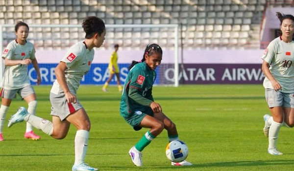 বাংলাদেশের নারী ফুটবল দলের শুরুটা ছিল প্রতিরোধমূলক ও দৃঢ়তার সাথে লড়াই করা। তবে শেষ পর্যন্ত আবারও তাকেই হার মানতে হয়েছে। দ্বিতীয় ম্যাচে পরাজয়টি ভারতীয় দলের জন্য চ্যালেঞ্জ হয়ে দাঁড়াচ্ছে পরবর্তী পর্বে অাগানো কঠিন করে তুলেছে। কিছু দিন আগে এশিয়ান কাপের মূল পর্বে শক্তিশালী চীনের বিপক্ষে দুটি গোল করে লড়াই করেছিল বাংলাদেশ, আজ শনিবার অনুষ্ঠিত এএফসি অনূর্ধ্ব-২০ বাছাই খেলাতেও চীনের কাছে হার মানতে হলো পিটার বাটলারের দলকে।
