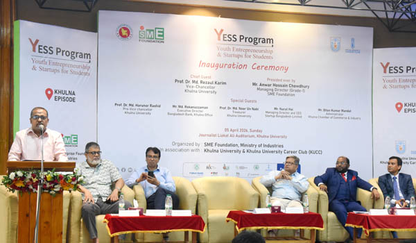 বিশ্ববিদ্যালয়ের শিক্ষার্থীদের উদ্যোক্তা হিসেবে গড়ে তোলা ও সৃজনশীল স্টার্টআপ ধারণা প্রসারের লক্ষ্য নিয়ে ‘ইয়ুথ এন্টারপ্রেনিউরশিপ অ্যান্ড স্টার্টআপ ফর স্টুডেন্টস’ শীর্ষক একটি কর্মশালা আজ রোববার (৫ এপ্রিল) খুলনা বিশ্ববিদ্যালয়ে অনুষ্ঠিত হয়েছে। শিল্প মন্ত্রণালয়ের অধীনে এসএমই ফাউন্ডেশন এ কর্মশালার আয়োজক ছিল। খুলনা বিশ্ববিদ্যালয় ও খুলনা ইউনিভার্সিটি ক্যারিয়ার ক্লাব সামগ্রিক সহযোগিতা প্রদান করেছে।