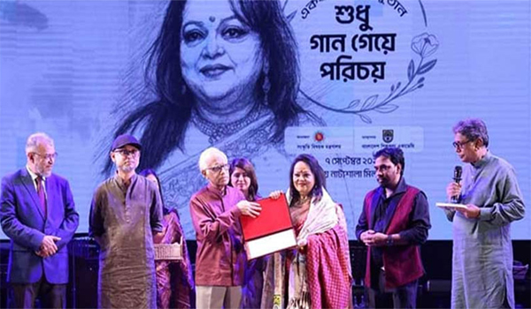 বাংলাদেশের বিশিষ্ট ও বরেণ্য সংগীতশিল্পী সাবিনা ইয়াসমিনকে রাষ্ট্রীয় সম্মাননা প্রদান করা হয়েছে। এই ঐতিহাসিক মুহূর্তটি রোববার সন্ধ্যায় অনুষ্ঠিত হয়, যেখানে সংস্কৃতি বিষয়ক মন্ত্রণালয়ের আয়োজনে ও বাংলাদেশ শিল্পকলা একাডেমির ব্যবস্থাপনায় জাতীয় নাট্যশালার মিলনায়তনে প্রধান অতিথি হিসেবে উপস্থিত ছিলেন উদীয়মান এবং প্রিয় এই গায়িকা।