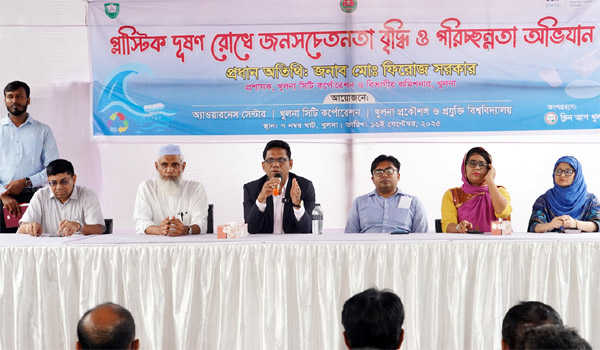 খুলনা সিটি কর্পোরেশনের প্রশাসক মোঃ ফিরোজ সরকার বলেছেন, সুন্দর ও শান্তিপূর্ণ বিনোদনের জন্য পরিচ্ছন্ন পরিবেশের গুরুত্ব অপরিসীম। পরিবেশ রক্ষা করে একটি স্বচ্ছ, প্রাণবন্ত নগরী গড়ে তুললে মানে শুধু পর্যটকদের আকর্ষণ বাড়বে না, পাশাপাশি স্থানীয় ব্যবসায়ী ও ট্রলার চালকদের আয়ের পরিমাণও বৃদ্ধি পাবে। তিনি এ কথা বলেন মঙ্গলবার বিকেলে নগরীর ৭নং ঘাট এলাকায় প্লাস্টিক দূষণ রোধে জনসচেতনতা বৃদ্ধির জন্য আয়োজিত পরিচ্ছন্নতা অভিযানের উদ্বোধনী অনুষ্ঠানে প্রধান অতিথির বক্তৃতায়। এই অনুষ্ঠানের আয়োজন করে খুলনা সিটি কর্পোরেশন (কেসিসি) ও খুলনা প্রকৌশল ও প্রযুক্তি বিশ্ববিদ্যালয় (কুয়েট) যৌথভাবে, ‘সাসটেইন্যাবল ক্যাপাসিটি বিল্ডিং টু রিডিউস ইরিভার্সিবল পলুশন’ (এসসিআইপি) প্রকল্পের আওতায়। পুলিশি উদ্যোগে এই ধরনের কার্যক্রমের মাধ্যমে নগরবাসীর মধ্যে সচেতনতা বাড়ানো এবং পরিবেশের প্রতি সচেতনতা জোরদার করার লক্ষ্যে এই উদ্যোগ নেওয়া হয়েছে।