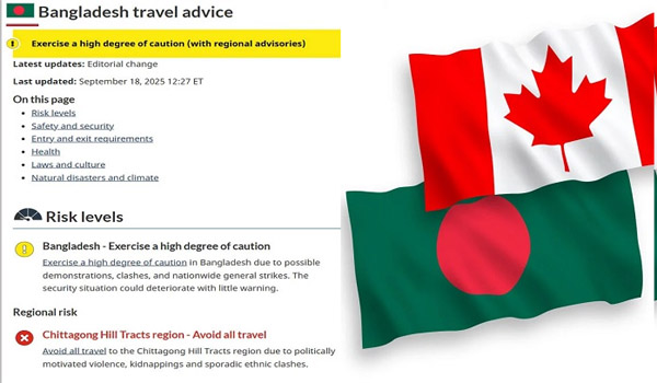 কানাডার বাংলাদেশ ভ্রমণে উচ্চ সতর্কতা জারি
