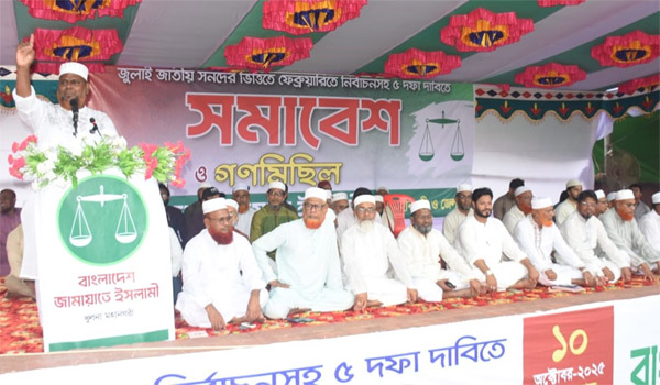 খুলনা নগরীর ঐতিহাসিক শহিদ হাদিস পার্কে অনুষ্ঠিত গণসংবর্ধনা ও সমাবেশে প্রধান অতিথি জামায়াতের কেন্দ্রীয় কর্মপরিষদ সদস্য ও খুলনা-৬ আসনের জামায়াত মনোনীত সংসদ সদস্য প্রার্থী মাওলানা আবুল কালাম আজাদ বলেন, বর্তমান রাজনৈতিক পরিস্থিতির সমাধান শুধুমাত্র নিরপেক্ষ ও অংশগ্রহণমূলক নির্বাচন আয়োজনের মধ্যদিয়েই সম্ভব। তিনি আরও বলেন, যে লক্ষ্যে ছাত্র-জনতার গণঅভ্যুত্থান হয়েছিল, তা এখনো বাস্তবায়িত হয়নি। তিনি প্রত্যাশা ব্যক্ত করেন যে, সকল রাজনৈতিক দল ও জনগণ এক হয়ে দেশের স্বৈরাচার, ফ্যাসিবাদ মুক্ত করে সুন্দর একটি গণতান্ত্রিক বাংলাদেশ গড়ে তুলতে ঐক্যবদ্ধ হবে।