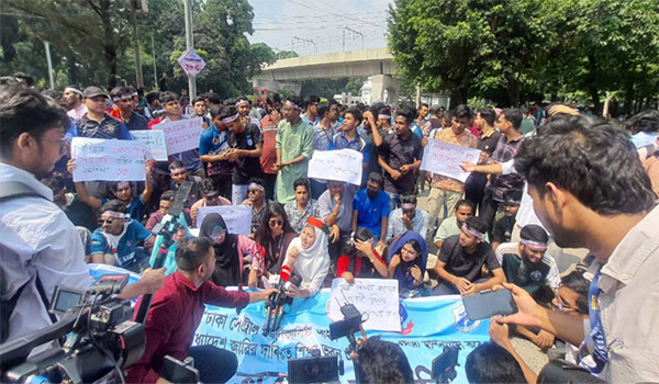 শিক্ষা ভবনের সামনে ৭ কলেজ ছাত্রের বিক্ষোভ এবং সড়কে পুলিশ ব্যারিকেড