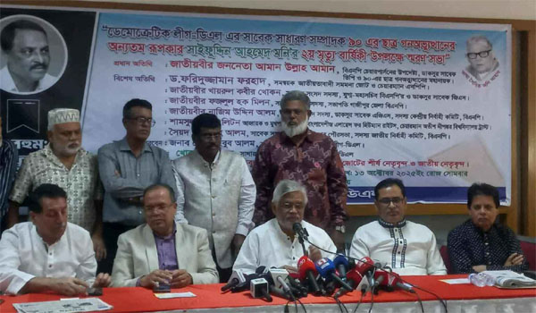 সভায় সভাপতিত্ব করেন ডেমোক্রেটিক লীগের সহসভাপতি মাহবুব আলম এবং সঞ্চালনা করেন সাধারণ সম্পাদক খোকন চন্দ্র দাস। এতে আরও বক্তব্য রাখেন ন্যাশনাল পিপলস পার্টির ফরিদুজ্জামান ফরহাদ, বিএনপির খায়রুল কবির খোকন, সাম্যবাদী দলের সৈয়দ নুরুল ইসলাম, গণদলের এটিএম গোলাম মাওলা চৌধুরী, গ্লোভাল বাংলাদেশীজ এলায়েন্স ফর হিউম্যান রাইটসের আহ্বায়ক ও অতীশ দীপঙ্কর বিশ্ববিদ্যালয় ট্রাস্টের চেয়ারম্যান শামসুল আলম লিটন সহ বিভিন্ন নেতৃবৃন্দ।
