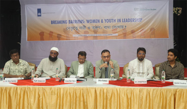 সেন্টার ফর গভর্ন্যান্স স্টাডিজ (সিজিএস) সম্প্রতি ‘নেতৃত্বে নারী ও তরুণ: বাধা কোথায়?’ শীর্ষক একটি সংলাপ ও কর্মশালার আয়োজন করে। এই অনুষ্ঠানে অংশগ্রহণ করেন বিভিন্ন রাজনৈতিক দলের প্রতিনিধি, তরুণ রাজনীতিবিদ, নারী নেতৃত্ব এবং সুশীল সমাজের সদস্যরা। মূল লক্ষ্য ছিল নারীদের রাজনীতিতে অংশগ্রহণের ক্ষেত্রে বিদ্যমান বাধা ও সম্ভাবনাগুলো নিয়ে আলোচনা করার জন্য একটি কার্যকর প্ল্যাটফর্ম তৈরি করা। পাশাপাশি তরুণ নেতাদের মধ্যে রাজনৈতিক নেতৃত্বে লিঙ্গভিত্তিক মানদণ্ড নিয়ে সচেতনতা ও ক্ষমতা বৃদ্ধি করাও এর অন্যতম উদ্দেশ্য।