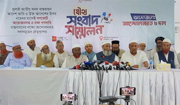 বাংলাদেশের আটটি রাজনৈতিক দল, যার মধ্যে রয়েছে জামায়াতসহ অন্যান্য ইসলামপন্থী দলগুলো, নতুন কর্মসূচি ঘোষণা করে দেশের শীর্ষ নেতৃত্ব। তারা দাবি করেছেন, জুলাই জাতীয় সনদ বাস্তবায়ন ও জাতীয় নির্বাচনের পূর্বে গণভোটের মাধ্যমে জনগণের রায় নেওয়া অপরিহার্য। এই পাঁচ দফা দাবির জন্য তারা তিন দিনের কর্মসূচি নির্ধারণ করেছেন। এর মধ্যে রয়েছে ফ্যাসিবাদী শক্তির নাশকতা রোধ ও জেলা-এলাকায় সমাবেশ করা। এছাড়া, দাবি না মানা হলে প্রধান উপদেষ্টার কার্যালয়ের সামনে শান্তিপূর্ণ অবস্থান কর্মসূচি দেবে তারা, যার জন্য আল্টিমেটামও দেয়া হয়েছে।