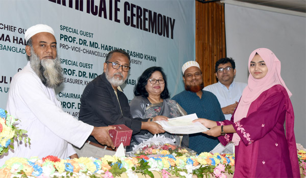 অনুষ্ঠানের সভাপতির বক্তৃতায় উপাচার্য প্রফেসর ড. মোঃ রেজাউল করিম বলেন, শিক্ষার্থীদের একাডেমিক সাফল্যের স্বীকৃতিই হলো এই সনদপত্র। এটি ভবিষ্যতে শিক্ষার্থীদের সিভি সমৃদ্ধ ও গুণগত মান বজায় রাখতে সহায়ক। তিনি আরও বলেন, সিভিতে শুধু একাডেমিক তথ্য নয়, বিভিন্ন প্রজেক্ট, থিসিস, কর্মশালা, সেমিনার ও সহশিক্ষামূলক কার্যক্রমের তথ্যও যোগ করতে হবে।