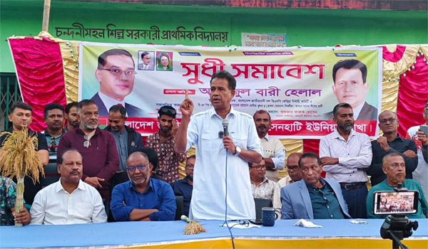 প্রধান অতিথি হিসেবে দিঘলিয়ার চন্দনী মহলে অংশগ্রহণ করে তিনি বলেছেন, ‘সন্ত্রাসী বা মাদক ব্যবসায়ীর কোনো রাজনৈতিক পরিচয় থাকতে পারে না। আমরা প্রতিহিংসা নয়, পরিবর্তনের রাজনীতিতে বিশ্বাস করি।’ বিএনপি কেন্দ্রীয় নির্বাহী কমিটির তথ্য বিষয়ক সম্পাদক ও খুলনা-৪ আসনের ধানের শীষের প্রার্থী আজিজুল বারী হেলাল বুধবার দিঘলিয়ার বিভিন্ন এলাকায় ব্যাপক জনসংযোগ, সুধী সমাবেশ, বৃক্ষরোপণ ও শিক্ষার্থীদের সঙ্গে মতবিনিময়সহ নানা কর্মসূচিতে অংশ নিয়ে এসব কথা বলেন। তিনি সেখানে ‘একটি বাড়ি, একটি গাছ’ শ্লোগান নিয়ে সবুজায়ন ও পরিবেশ রক্ষা করার গুরুত্ব তুলে ধরেন। বিভিন্ন শিক্ষা প্রতিষ্ঠানে গাছ লাগানোর পাশাপাশি শিক্ষার্থীদের পরিবেশের প্রতি সচেতন ও দায়িত্বশীল হওয়ার আহ্বান জানান। গণসংযোগকালে হেলাল বলেন, দিঘলিয়ায় সন্ত্রাস, চাঁদাবাজি ও মাদক ব্যবসায়ীদের জন্য কোনো ঠাঁই নেই। বিএনপি কখনো অপরাধীদের পৃষ্টপোষকতা করে না। অপরাধীর পরিচয় তাকে তার অপরাধ; সে সেটা কোনো রাজনৈতিক দলের হতে পারে না বলেও তিনি স্পষ্ট করেন। হেলাল আরও বলেন, স্টার জুট মিলসহ এই অঞ্চলের বন্ধ হয়ে থাকা সব শিল্প-কারখানা পুনরায় চালু করা হবে, যাতে কর্মসংস্থান বৃদ্ধি পায়। অ্যাকসেসের বিশুদ্ধ পানির সংকট দুরু করতে আধুনিক ওয়াটার প্ল্যান্ট স্থাপন করা হবে। পুরো এলাকাটি পরিকল্পিতভাবে উন্নত নগরায়নের আওতায় নিয়ে আসা হবে। তিনি সরকারকে আক্রমণ করে বলেন, বর্তমান আওয়ামী লীগ জনগণের কাছ থেকে বিচ্ছিন্ন হয়ে পড়েছে। তাদের ফ্যাসিস্ট মাফিয়া চেহারা এবং বিদেশে পালানো নেতারা ব্যর্থ। এ সুযোগে জামায়াতও নিজেদের বিকল্প হিসেবে দেখাচ্ছে, কিন্তু জনগণ বিএনপিকেই পরিবর্তনের আস্থা হিসেবে ধরা đang। সুধী সমাবেশে সভাপতিত্ব করেন শেখ মোসলেম উদ্দিন, উপস্থিত ছিলেন জেলা ও উপজেলা বিএনপির নেতারা, স্বেচ্ছাসেবক দলের নেতাকর্মীরা ও স্থানীয় গণ্যমান্য ব্যক্তিবর্গ।