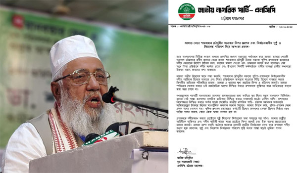 চট্টগ্রামের জামায়াত নেতা শাহজাহান চৌধুরীর ভাইরাল বক্তব্যের তীব্র নিন্দা জানিয়েছে জাতীয় নাগরিক পার্টি (এনসিপি) চট্টগ্রাম মহানগর শাখা। দলটি মনে করে, এই বক্তব্য সুশাসন ও নির্বাচনকালীন নিরপেক্ষ প্রশাসন ব্যবস্থার জন্য একটি বড় হুমকি এবং মাফিয়াতন্ত্র কায়েমের ইঙ্গিত বহন করে। রোববার দলটির চট্টগ্রাম মহানগর যুগ্ম-সমন্বয়কারী (দপ্তর) আরিফ মঈনুদ্দিন স্বাক্ষরিত এক বিবৃতিতে এসব কথা বলা হয়। সংবাদমাধ্যমে পাঠানো বিবৃতিতে তারা জানায়, বেশ কিছু সংবাদ মাধ্যমে প্রকাশিত খবর অনুযায়ী, তারা জানতে পেরেছে যে, গত ২২ নভেম্বর শনিবারচট্টগ্রামের প্রবীণ জামায়াত নেতা শাহজাহান চৌধুরী পুলিশ-প্রশাসনকে নির্দেশ দিয়েছেন জামায়াতের নেতাদের উঠবস করানোর, মিথ্যা মামলা দেওয়ার এবং গ্রেফতার proceedings চালানো। এছাড়া তিনি শিক্ষাপ্রতিষ্ঠানে জামায়াতের মার্কার প্রচার এবং উপজেলা নির্বাহী কর্মকর্তাকে স্থানীয় জামায়াত প্রার্থীর জন্য উন্নয়ন বরাদ্দ প্রদান করার নির্দেশনা দিয়েছেন। তারা গভীর উদ্বেগের সঙ্গে লক্ষ্য করেন, শাহজাহান চৌধুরীর বক্তব্যে পুলিশ-প্রশাসনকে ক্ষমতাসীন দলের লাঠিয়াল হিসেবে ব্যবহার এবং শিক্ষাপ্রতিষ্ঠানগুলোকে ক্ষমতায় যাওয়ার কর্তব্য হিসেবে উপস্থাপন করার অপপ্রয়াস রয়েছে। এই ধরনের অজস্র ঘৃণ্য প্রচেষ্টার নিন্দা ও কঠোর প্রতিবাদ জানানো হয়। দলটি স্পষ্টভাবে ঘোষণা করে, রাজনীতির সুবিধা নেওয়ার জন্য প্রশাসনকে কুক্ষিগত করে মাফিয়াতন্ত্র কায়েমের অপচেষ্টা আর চলবে না। বিবৃতিতে বলা হয়, এমন পরিস্থিতির মধ্যেও বাংলাদেশের জনগণের আশা ছিল নতুন ও সুবিচার রাজনীতি প্রতিষ্ঠার। সেই লক্ষ্যে তারা সকল সময় জনগণের নাগরিক অধিকার সুরক্ষায় প্রতিশ্রুতিবদ্ধ। প্রশাসনের নিরপেক্ষতা নিশ্চিত করতে তারা সবসময় সচেষ্ট। জাতীয় নাগরিক পার্টি-চট্টগ্রাম মহানগর সবসময়ই মাফিয়াতন্ত্রের বিরুদ্ধে নিজেদের অবস্থান স্পষ্ট করেছে। তারা বিশ্বাস করে, পুলিশ ও প্রশাসন দেশের জনগণের সেবক হিসেবে দায়িত্ব পালন করবে, কোনও দলবিশেষের গোলাম হয়ে থাকবে না। প্রশাসনকে দলীয়ীকরণ করার অপচেষ্টা সুষ্ঠু, নিরপেক্ষ নির্বাচনের জন্য বড় একটি বাধা। তারা এই ধরনের প্রচেষ্টার তীব্র নিন্দা জানিয়ে, সংশ্লিষ্ট ব্যক্তিদের বক্তব্য প্রত্যাহার করার আহ্বান জানায়। তারা আশা করে, বর্তমান সরকার আগামী জাতীয় নির্বাচনের জন্য প্রশাসন নিরপেক্ষ ও দলীয় প্রভাবমুক্ত রাখার জন্য যথাযথ পদক্ষেপ নেবে, যাতে সুষ্ঠু ও নিরপেক্ষ নির্বাচন সম্ভব হয়।