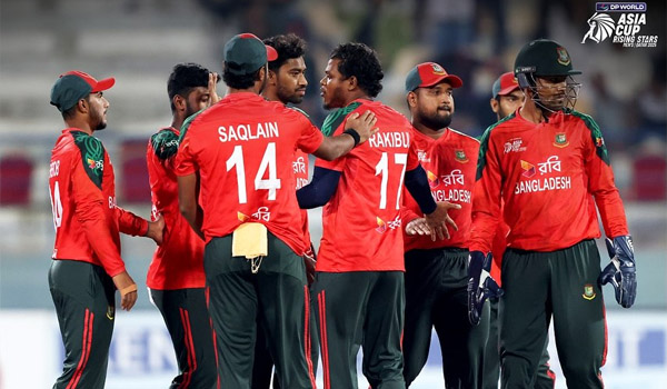 কাতারের দোহায় পাকিস্তানের জয়ের জন্য ১২৬ রানের লক্ষ্য তোলে বাংলাদেশ। শুরুতে ভালো করে ব্যাটিং, তবে দ্রুতই বেশিরভাগ উইকেট হারায়। রিপন মণ্ডল প্রথম বলেই ইয়াসির খানকে রান আউট করে দেন। পরের ওভারে মেহেরব মোহাম্মদ ফায়েককে শিকার করেন। জুটি গড়ার চেষ্টা করেছিলেন হাজী ঘুরি, কিন্তু জিসান আলমের দুর্দান্ত বোলিংয়ে তাকে দারুণভাবে আটকানো হয়। পাঁচোউইন্ডে গাজী ৯ বলে ৯ রান করে বোল্ড হন। এরপর সাদ মাসুদের উপর দারুণ চাপ সৃষ্টি করেন সোহান, প্রথম পাঁচ বলে চার ও ছক্কা এই ওপেনার। তবে শেষ বলে পুল করতে গিয়ে শর্ট স্কয়ার লেগে ক্যাচ দিয়ে ২৬ রান করে ফিরে যান। পরের ওভারে মাহিদুল ইসলাম অঙ্কনও আউট হন। রিভার্স সুইপ করতে গিয়ে লেগ বিফোর উইকেটে পড়েন। প্রথম সময়ে অঙ্কনের জন্য রানের খাতা খোলাও কঠিন হয়। তার পর বাংলাদেশ অধিনায়ক আকবর স্পিনার সুফিয়ান মুকিমের অফ স্টাম্পের বাইরের বলে ইনসাইড এজে বোল্ড হন। ১০ বলে মাত্র ২ রানে অপরাজিত থাকেন। এরপর ইয়াসির আলী রাব্বিও আউট হন শর্ট কভারে ইরফান খানের হাতে ক্যাচ দিয়ে। মাহফুজুর রহমান রাব্বি ও মৃত্যুঞ্জয় চৌধুরী ব্যর্থ হন সংখ্যাগরিষ্ঠ, শেষের দিকে রাকিবুল ও মেহেরব কিছুটা আশা জাগান। তবে তাদের জুটি খুব একটা বড় হয়নি। দানিয়ালকে ছক্কা মারতে গিয়ে মেহেরব ১৯ রানে আউট হন, আর রাকিবুল ২৪ রানে ফিরতে হয়। শেষ ওভারে ১২৫ রান সংগ্রহ করে বাংলাদেশ। ম্যাচ চলাকালে বাংলাদেশ ও পাকিস্তানের মধ্যে উত্তেজনাপূর্ণ পরিস্থিতি সৃষ্টি হয়, যা সুপার ওভারে গড়ায়।