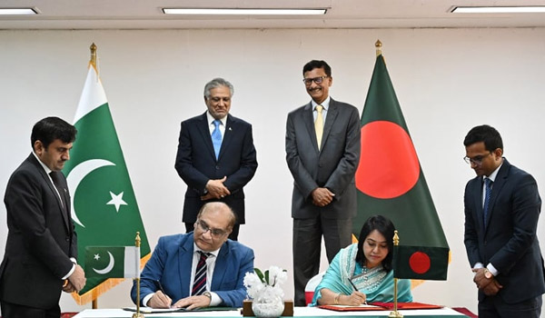 বাংলাদেশ ও পাকিস্তানের মধ্যে একটি ঐতিহাসিক চুক্তি ও চারটি সমঝোতা স্মারক (এমওইউ) স্বাক্ষরিত হয়েছে। রোববার দুপুরে রাজধানীর হোটেল সোনারগাঁওয়ে অনুষ্ঠিত দ্বিপক্ষীয় বৈঠকের শেষে এসব চুক্তি ও স্মারক স্বাক্ষরিত হয়। ওই বৈঠক অনুষ্ঠিত হয় পররাষ্ট্র উপদেষ্টা মো. তৌহিদ হোসেন এবং পাকিস্তানের উপপ্রধানমন্ত্রী ও পররাষ্ট্রমন্ত্রী মোহাম্মদ ইসহাক দার মধ্যে।