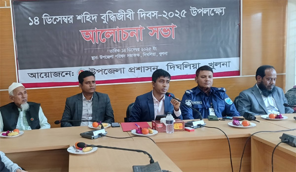 দিঘলিয়ায় বাংলার মহান শহীদ বুদ্ধিজীবী দিবস উপলক্ষে আজ রোববার একটি সংবর্ধনা ও আলোচনা সভা অনুষ্ঠিত হয়েছে। খুলনার দিঘলিয়া উপজেলার প্রশাসনের উদ্যোগে এটি অনুষ্ঠিত হয়, যেখানে সভাপতিত্ব করেন উপজেলা নির্বাহী অফিসার মোঃ হারুন অর রশিদ। এতে বিভিন্ন উপজেলা বিভাগের কর্মকর্তা, মুক্তিযোদ্ধা, সামাজিক ব্যক্তিত্ব ও সুধীজন উপস্থিত ছিলেন।