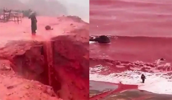 ইরানের হরমুজ দ্বীপে বৃষ্টির পর এক অসাধারণ ও আকর্ষণীয় দৃশ্যের সৃষ্টি হয়েছে। স্বাভাবিকভাবে পাহাড় থেকে ঝরানো воды যখন সমুদ্রে প্রবাহিত হচ্ছে, তখন দেখা যাচ্ছে মাটির রঙ রক্তের মতো লাল হয়ে গেছে। এই দৃশ্যটি যেন একটি চিত্রকলা বা প্রাকৃতিক ছবি, যা মনকে মুগ্ধ করে দেয়।